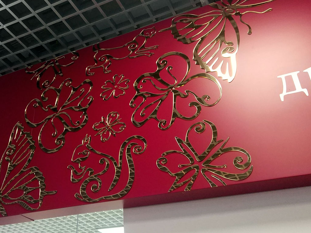 - Широкой сферой применения — элементы интерьера, экстерьера и декора, в производстве мебели, в производстве внутренних и наружных элементов рекламы, элементов торгового оборудования и пунктов продаж. Изготовление изделий с высокой отражающей способностью, указателей, предупреждающих дорожных знаков, выставочных экспозиций, элементов фасадов зданий, зеркальных стен, потолков, стоек и т. д;