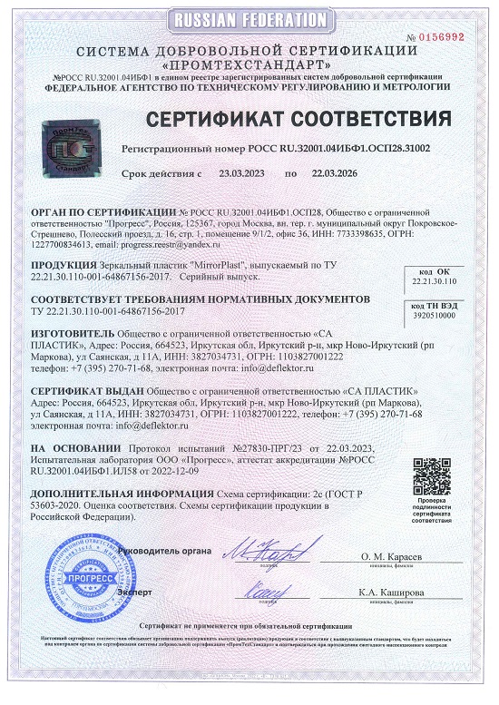 «MirrorPlast» — это новый уникальный продукт от «СА Пластик» полностью произведённый в России!